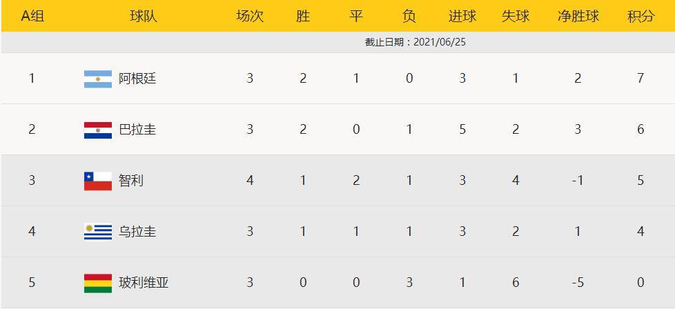 北京时间6月25日上午8点,2021年美洲杯A组第4轮小组赛迎来第二场比赛。在巴西利亚体育场,智利0-2不敌巴拉圭,两队携手出线。卡洛斯-冈萨雷斯头球首开纪录,阿尔米隆传射建功。