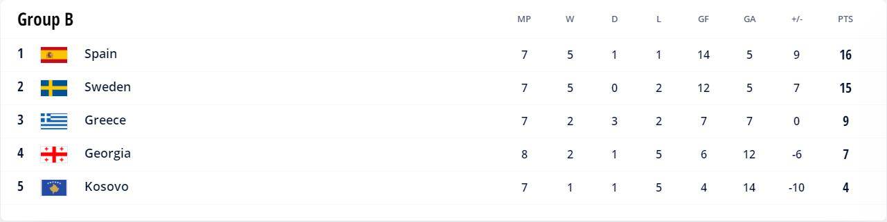 北京时间11月12日凌晨3时45分,2022年世界杯欧洲区B组的一场大战打响,欧洲豪门西班牙在客场对战希腊。上半场比赛,马苏拉斯破门被吹,萨拉维亚点射破门,莫拉塔小角度打门被挡出。下半场比赛,双方再无建树。最终,全场比赛结束,西班牙以1-0的比分战胜了希腊。拿到3分后,西班牙反超瑞典来到小组第一,末轮战瑞典保持不败即可直接出线。