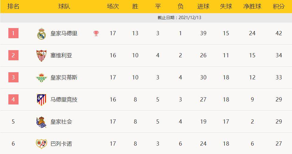 北京时间12月13日凌晨4:00,2021-2022赛季西甲第17轮的一场大战打响,西甲豪门皇马在主场对战马竞。上半场比赛,本泽马接到维尼修斯的助攻凌空抽射得分。下半场比赛,阿森西奥接到维尼修斯的助攻打入一球。全场比赛结束,皇马在主场2-0完胜马竞,继续在西甲高居首位。
